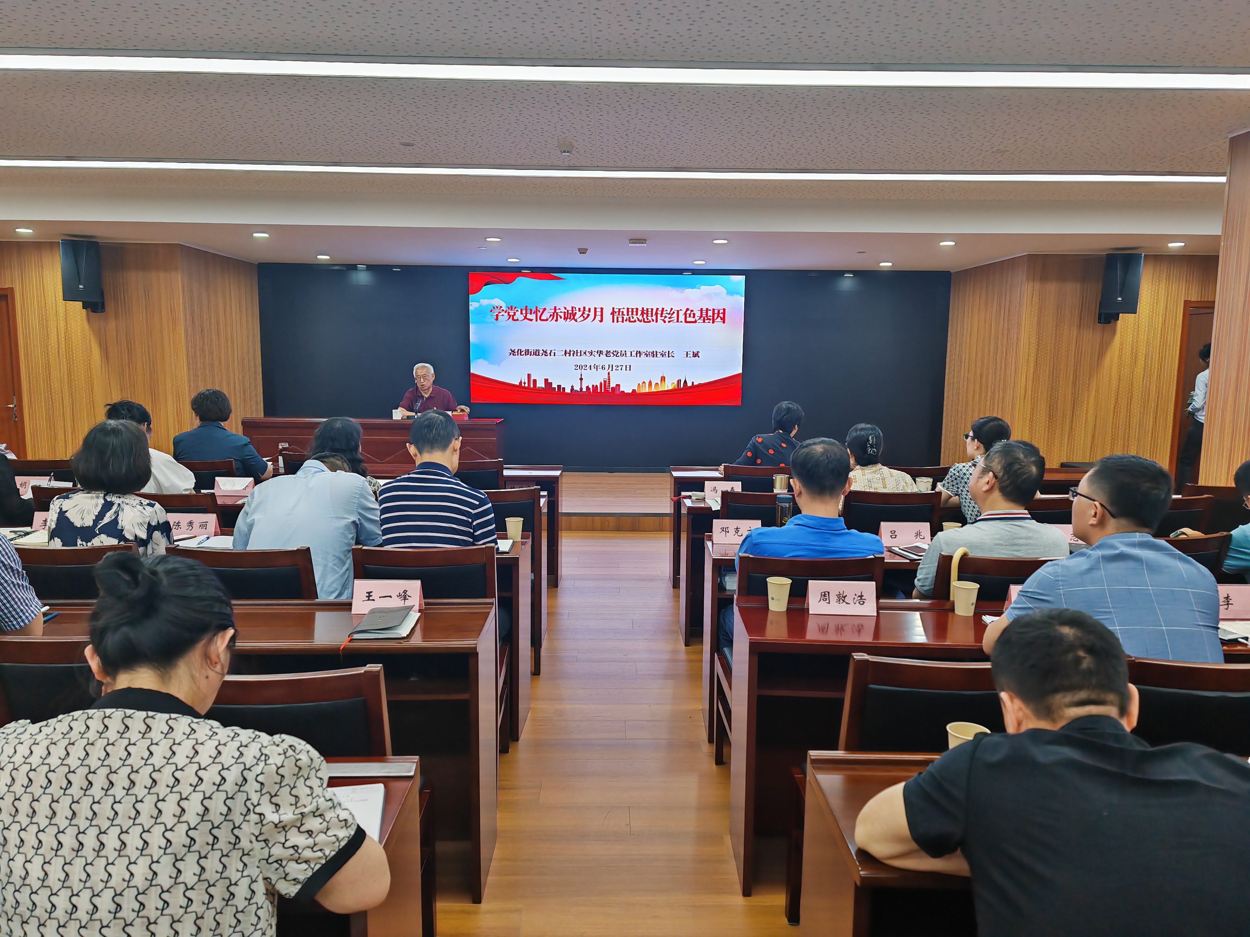 王斌同志已有51年党龄,曾任中国石化第二建设公司党委委员、宣传部部长、人事教育处处长等职。退休后仍然坚守党员初心,发挥余热,全力支持社区基层治理,积极参与宣讲进机关、进学校、进企业活动。活动中,他满怀热情、生动细腻地讲述了父辈的峥嵘岁月和自身工作历程,从亲身经历、典型事例和生活发展变化等方面分享了个人感悟,勉励大家要坚定理想信念,踏踏实实工作,把党的全心全意为人民服务的宗旨落到实处。
